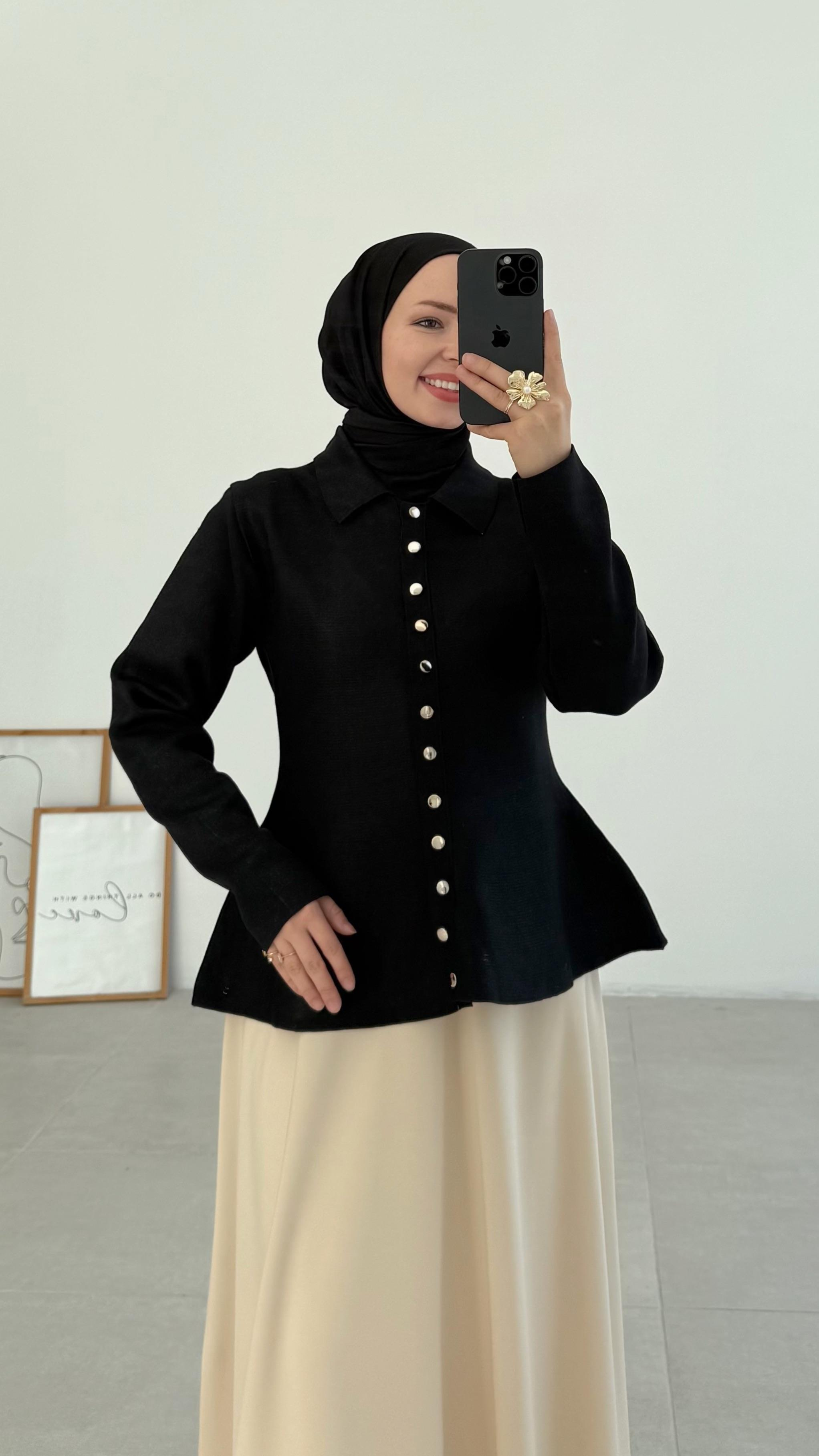 Açelna Yakalı Merserize Siyah Hırka (3116) (1818)