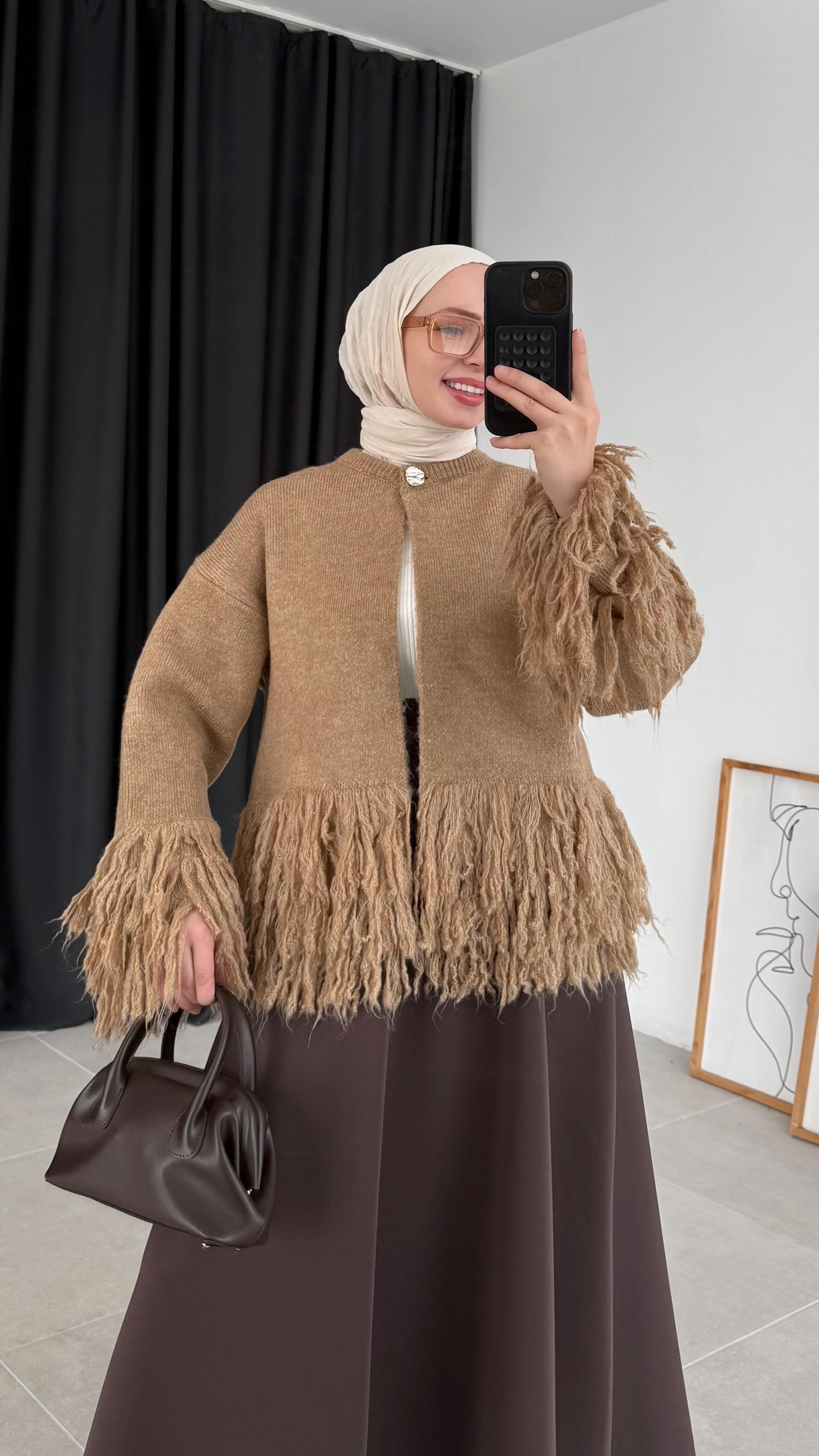 Akel Püsküllü Vizon Triko Hırka