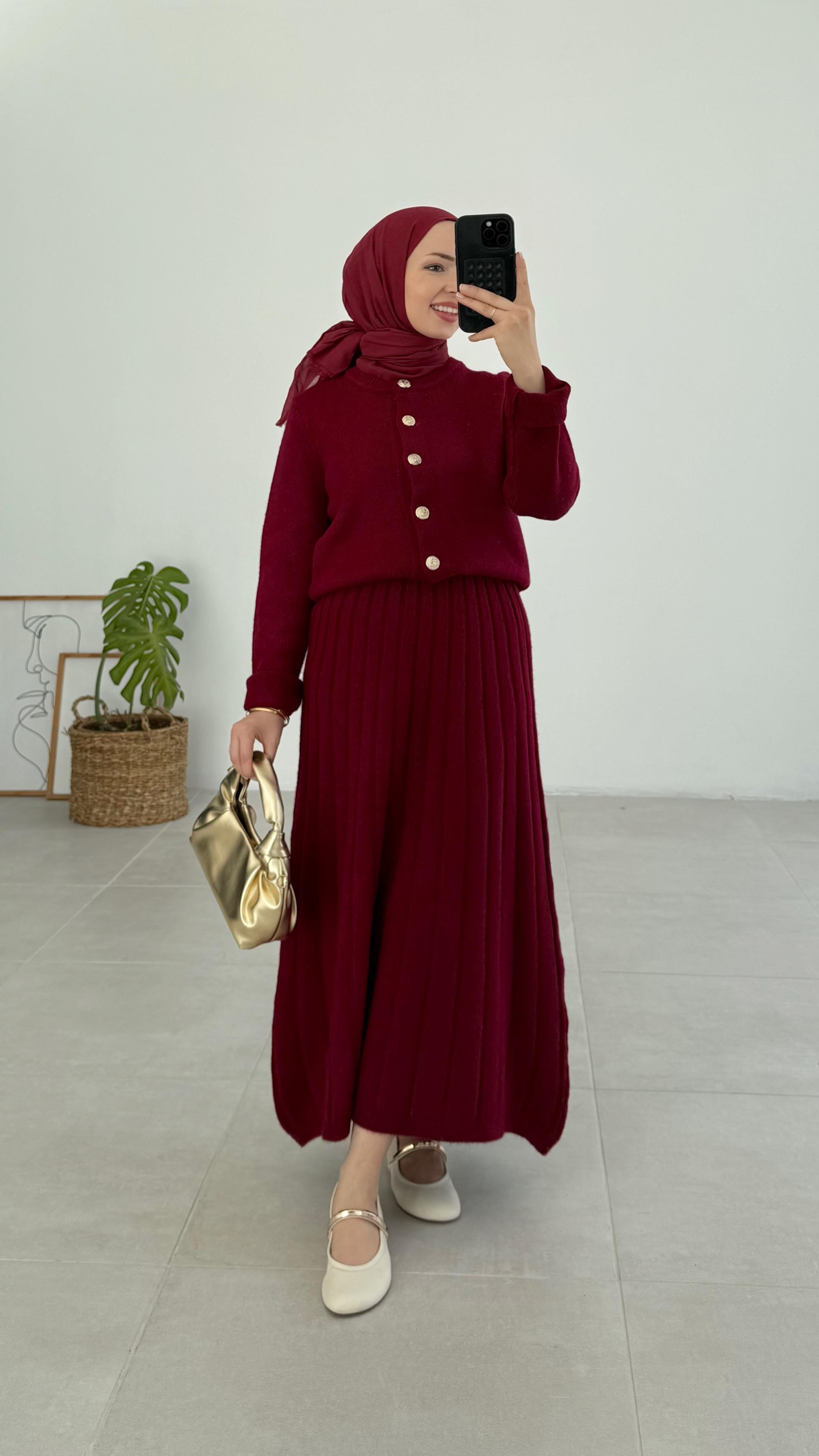 Burguny Triko Taş Etek Takım Burguny Triko Antrasit Etek Takım Burguny Triko Bordo Etek Takım