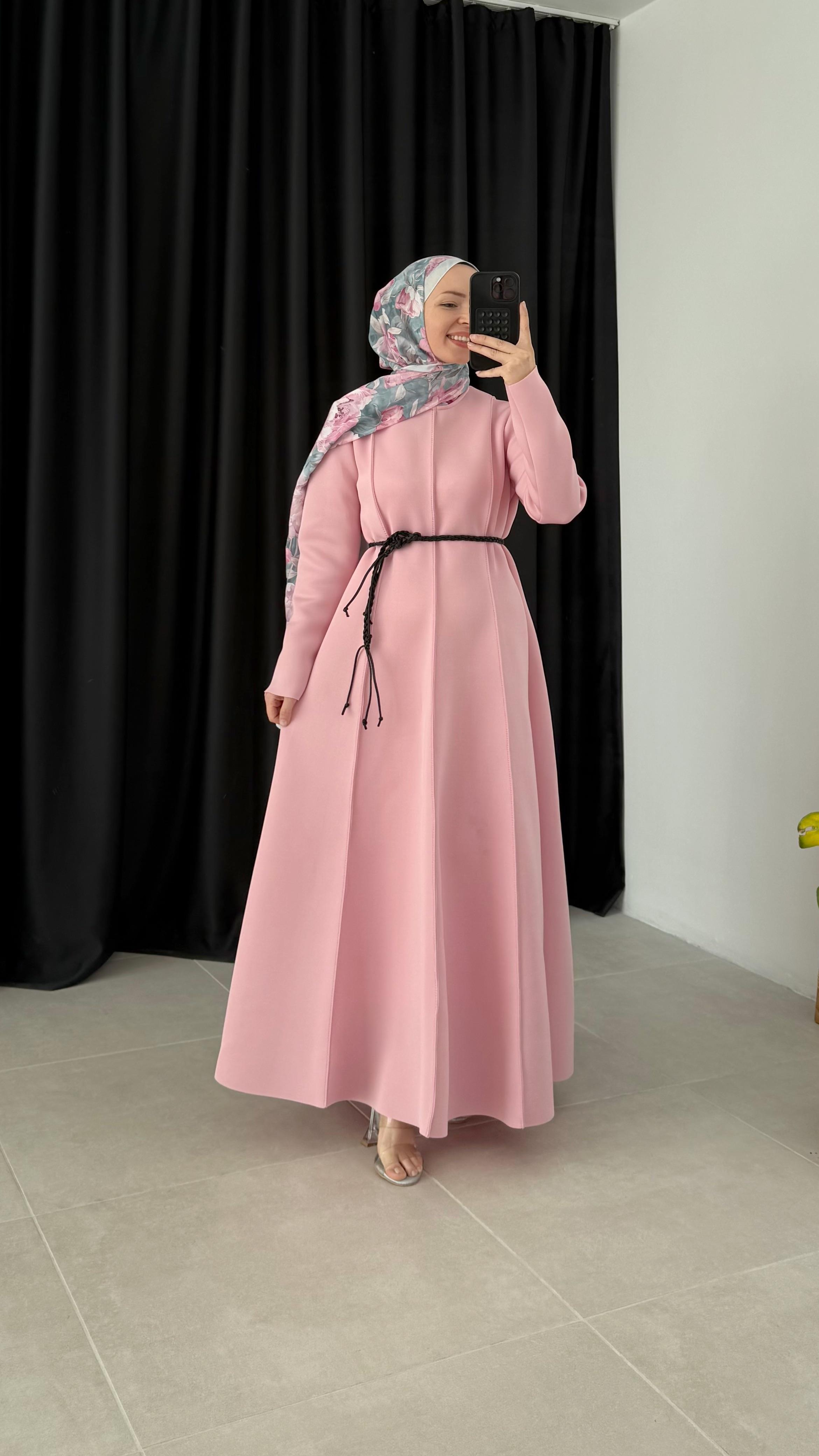 Claire Premıum Puf Scuba Pembe Elbise (1795)