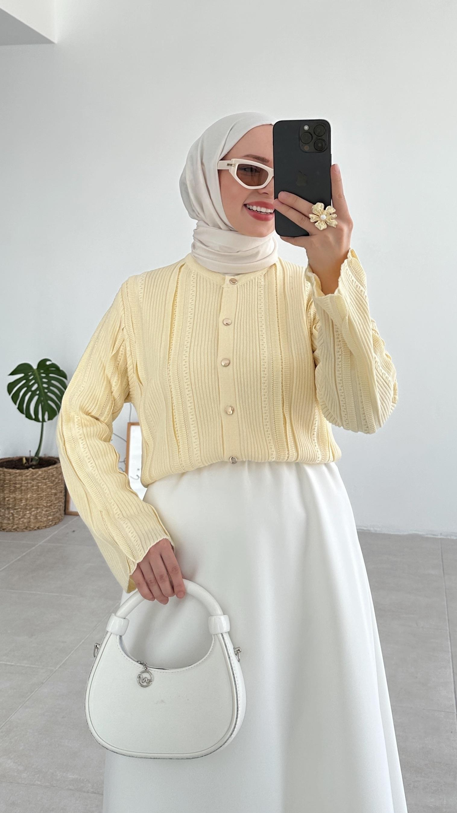 Falin Simli Tereyağ Sarısı Hırka (3002) (1813)