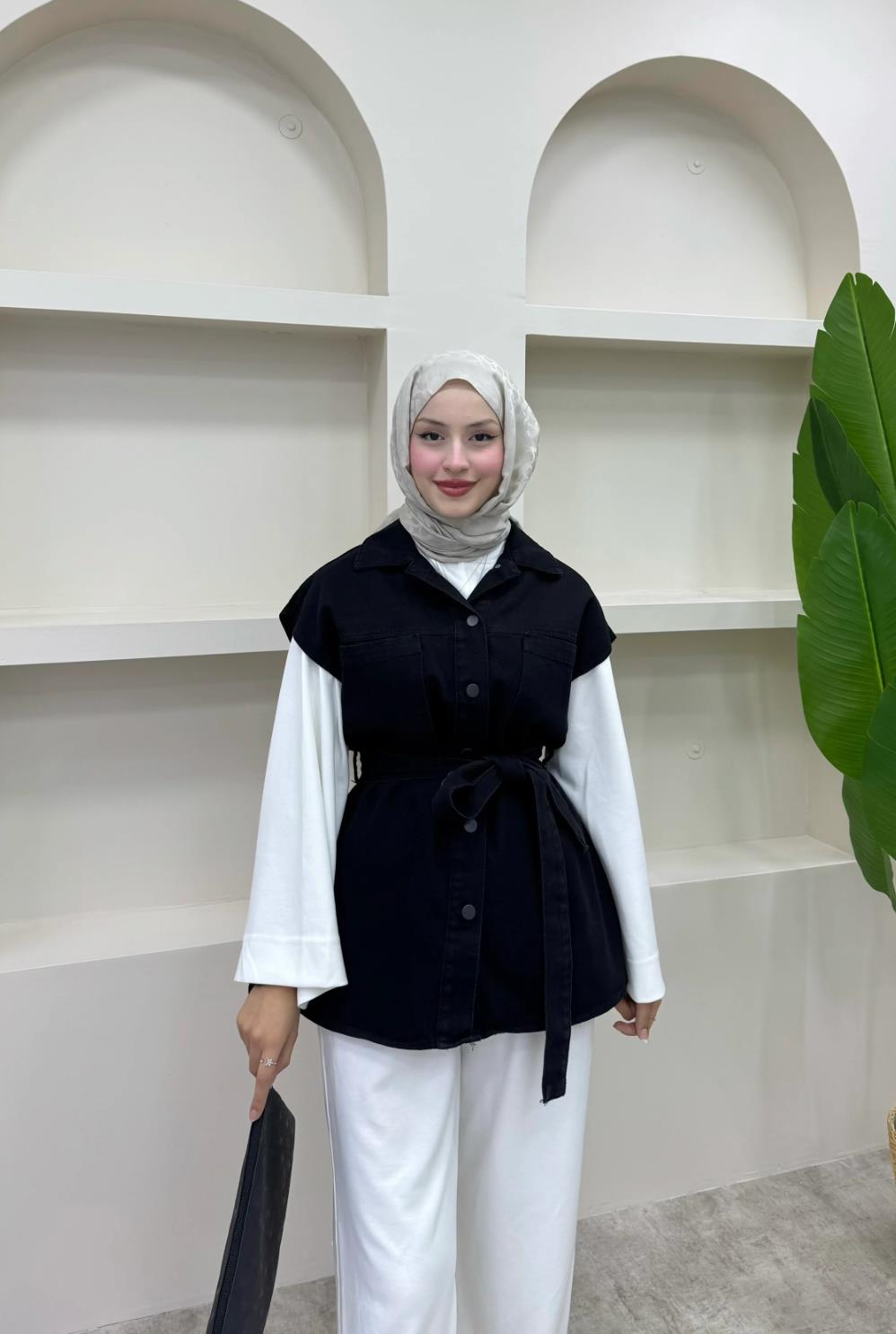 Kora Çift Cepli Siyah Kot Yelek (1804)