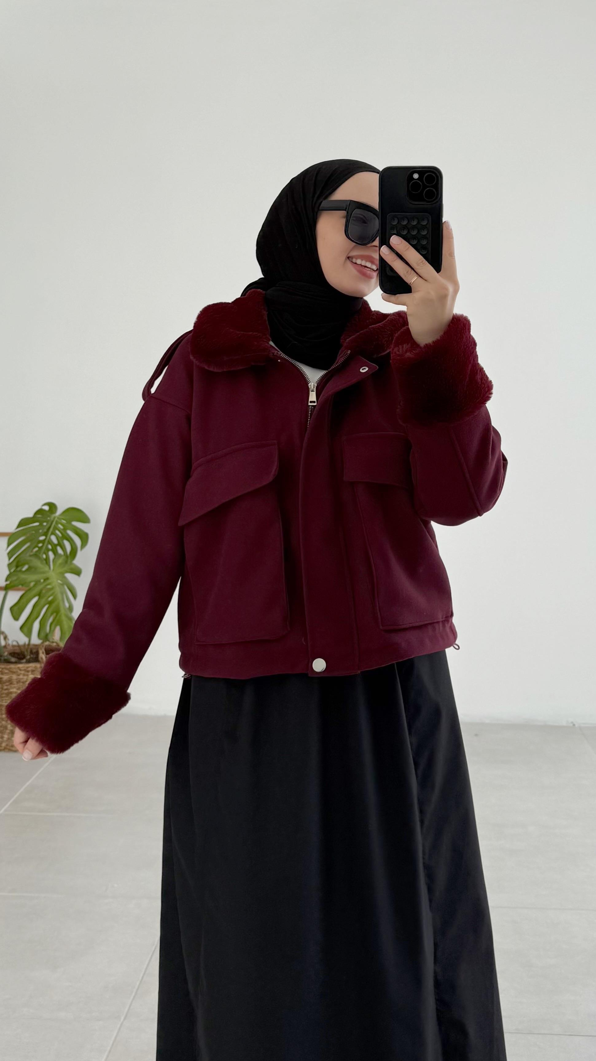 Körük Cep Detaylı Kaşe Bordo Mont (1783)