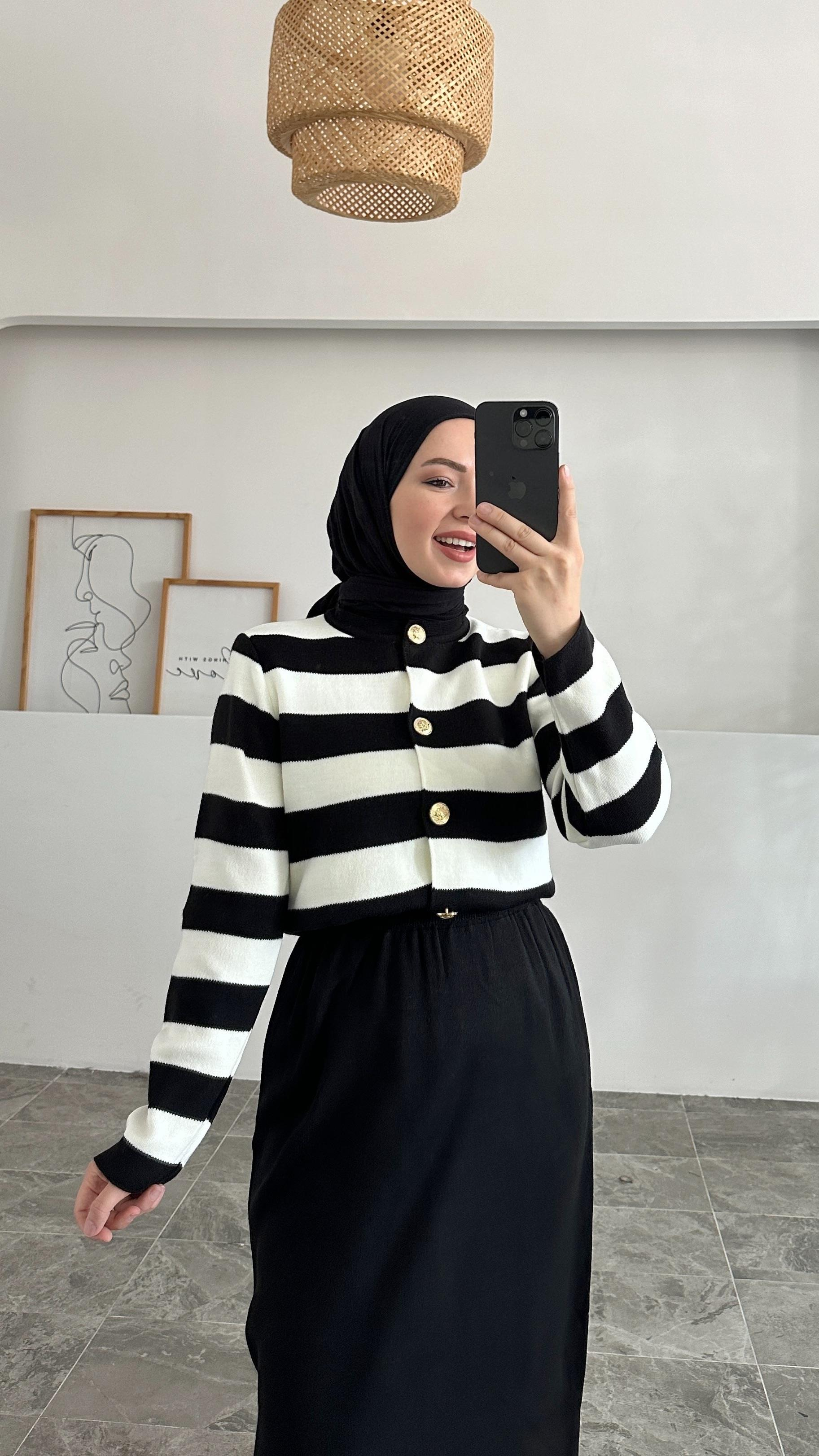Leidy Siyah Zara Model Çizgili Kısa Triko Hırka (2796) (1162)