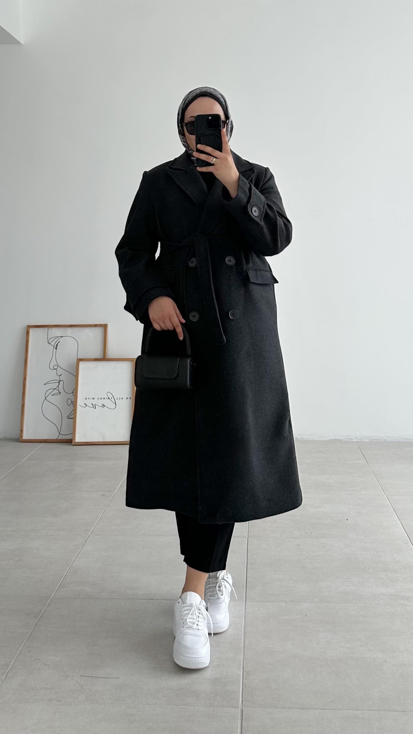 Lilina Geniş Manşet Kaşe Premıum Antrasit Kaban (1797)