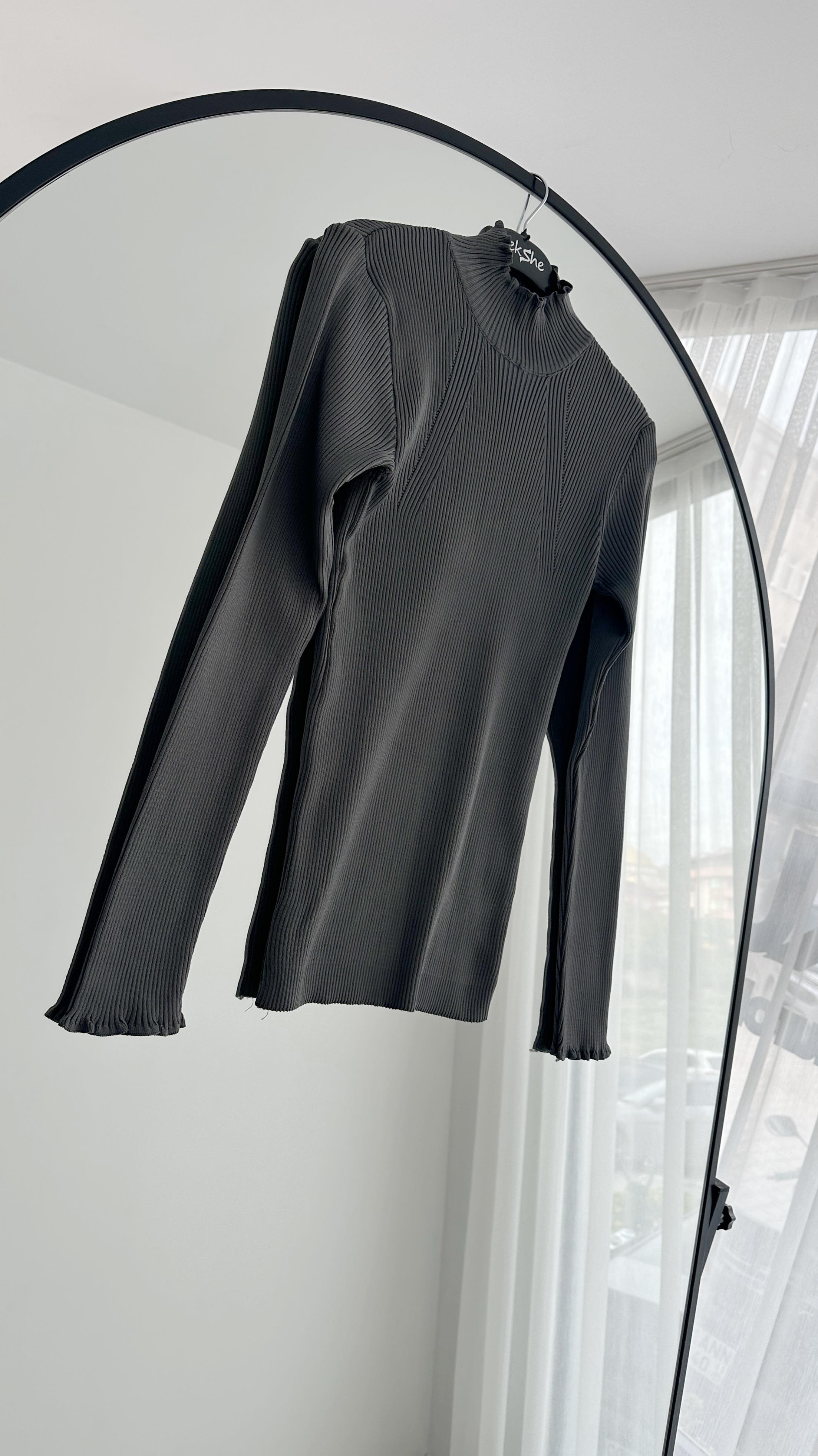 Merserize Tüylenmez Premıum Fitilli Gri Bluz (1180)