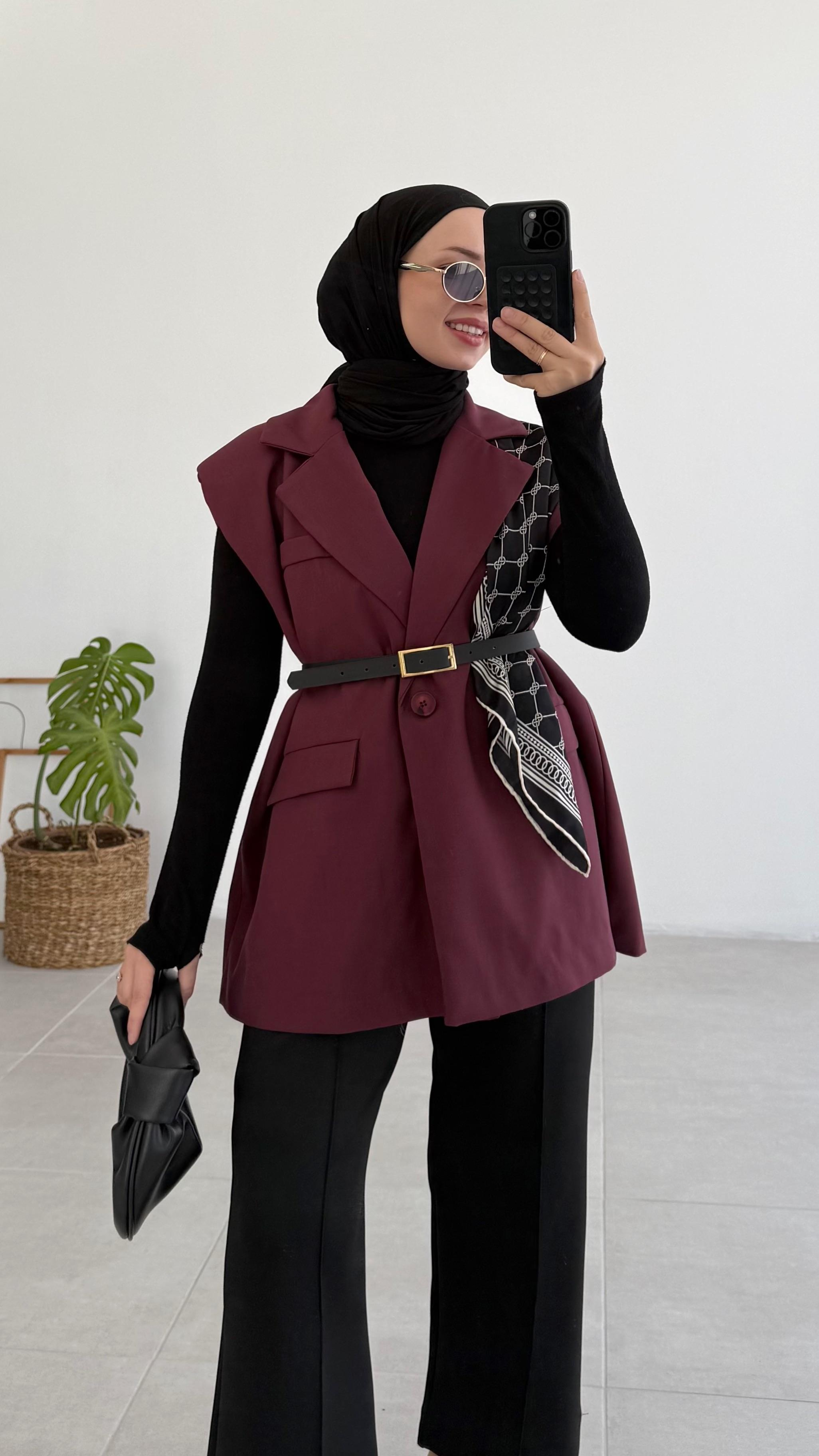 Tegga Bezayağı Kemerli Bordo Yelek