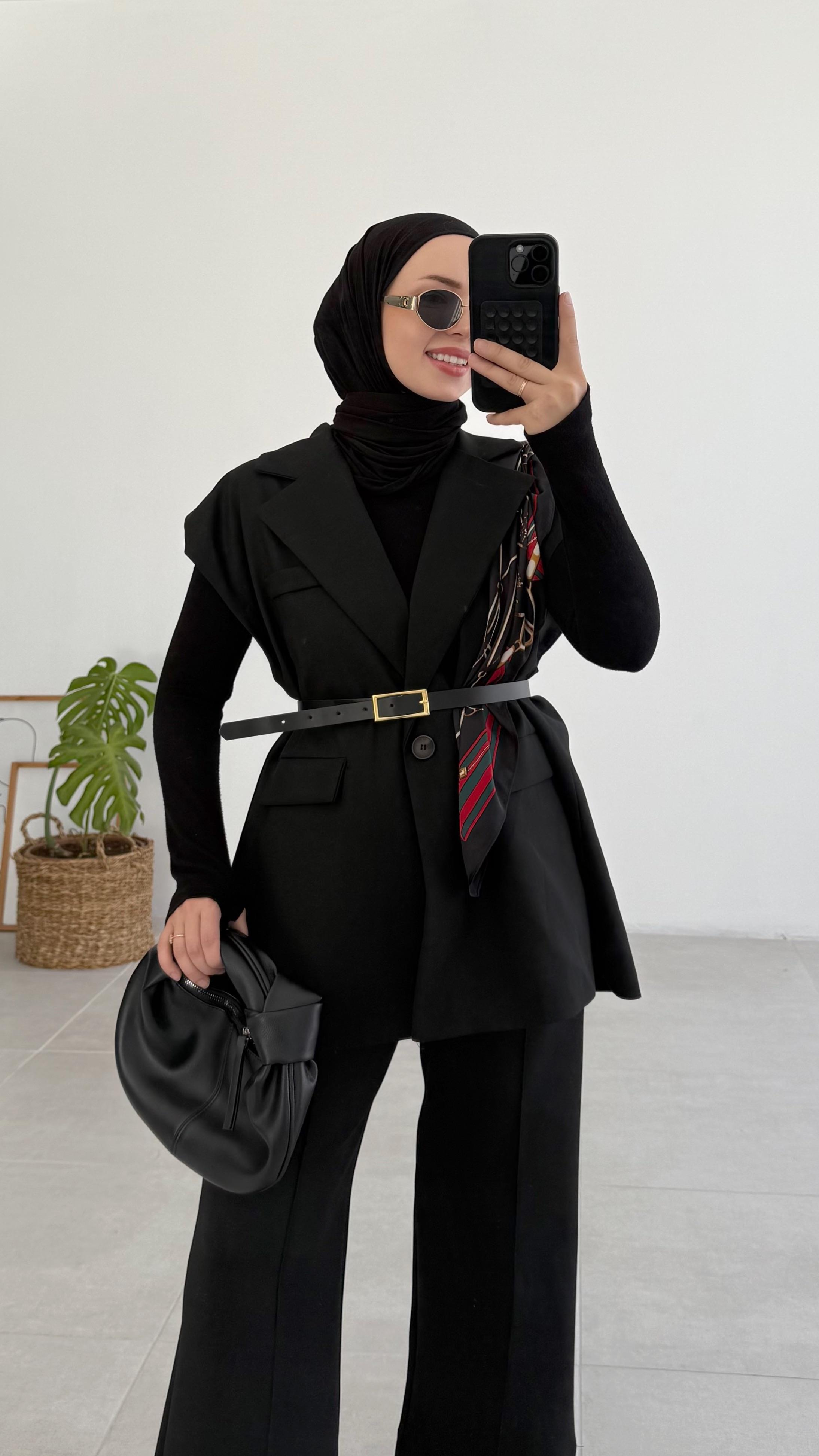 Tegga Bezayağı Kemerli Siyah Yelek (1777)