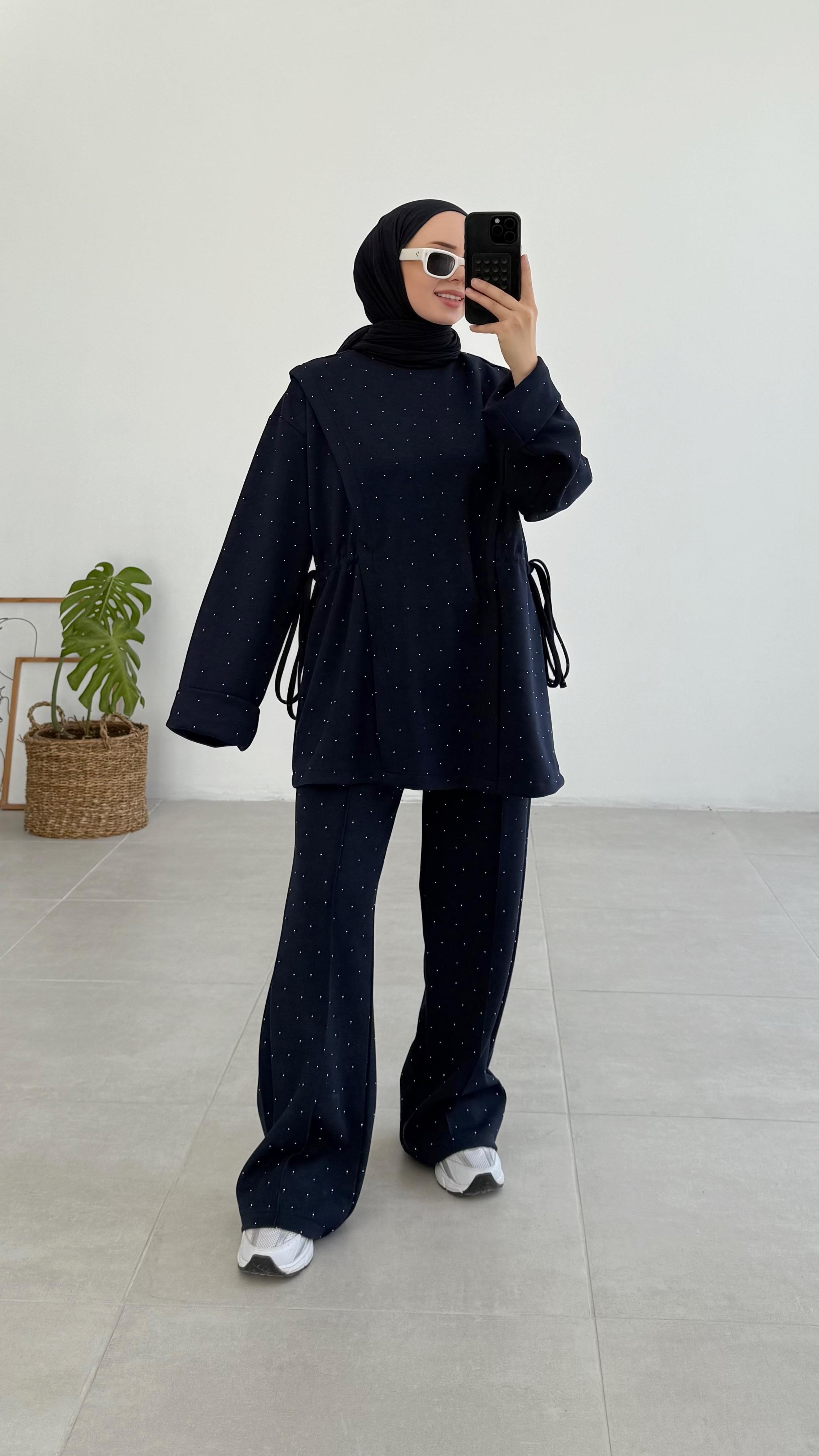 Tünel Detaylı Premıum Taşlı Lacivert Oysho Takım (1775)