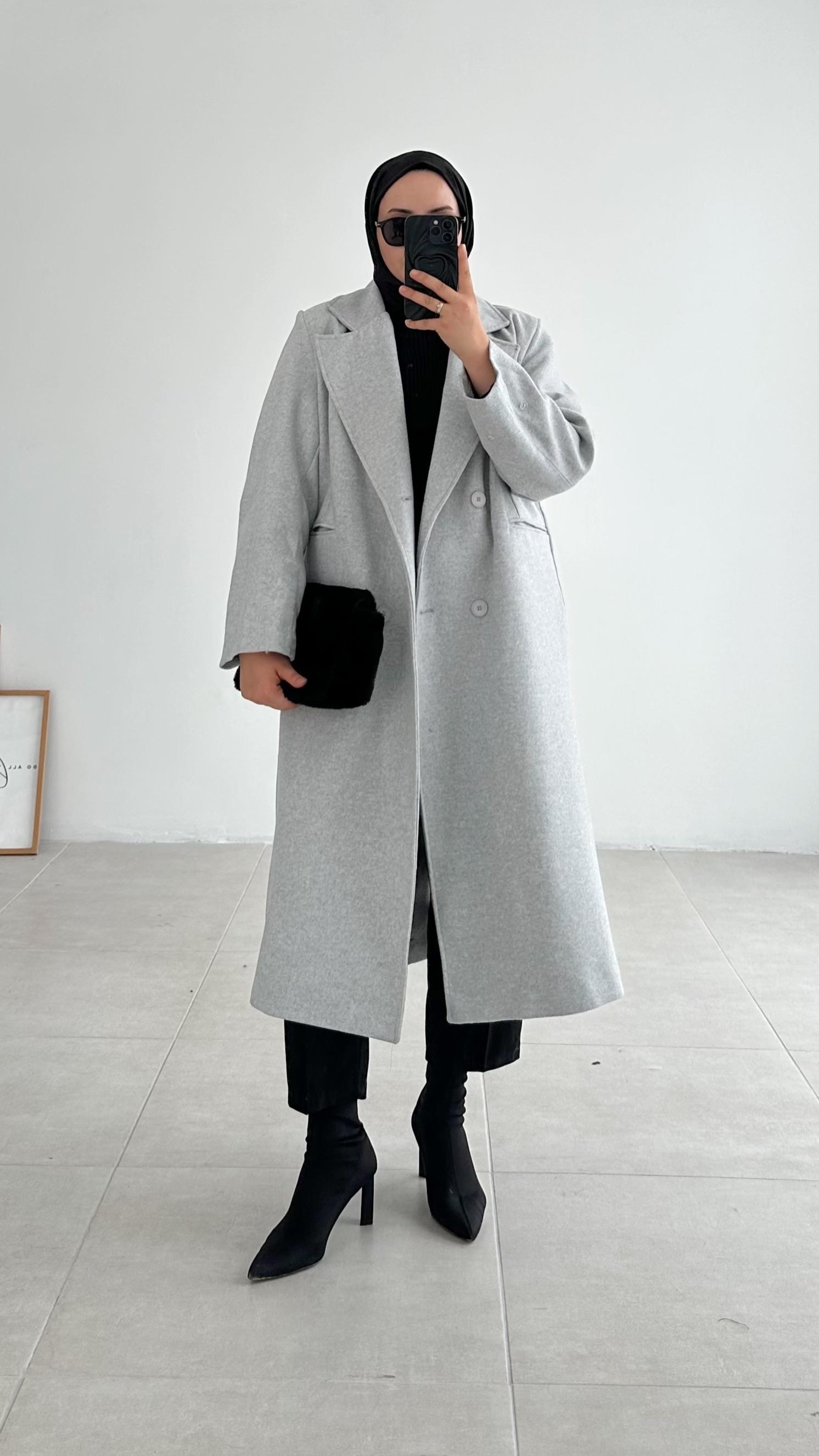 Wando Kürk Detaylı Kaşe Gri Kaban (1801)