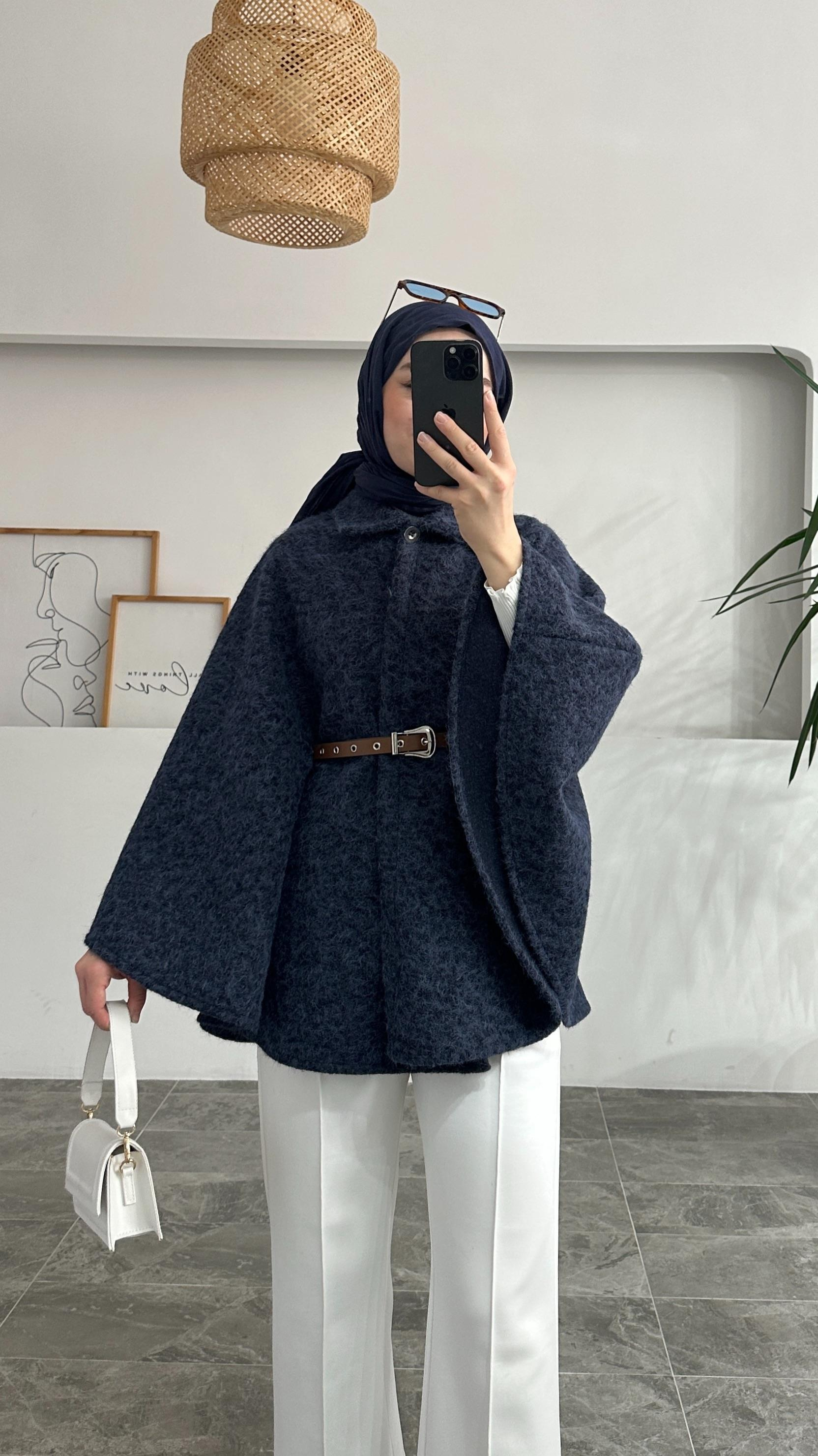 Wonder Pelerin Lacivert Kaşe Kap (1536)