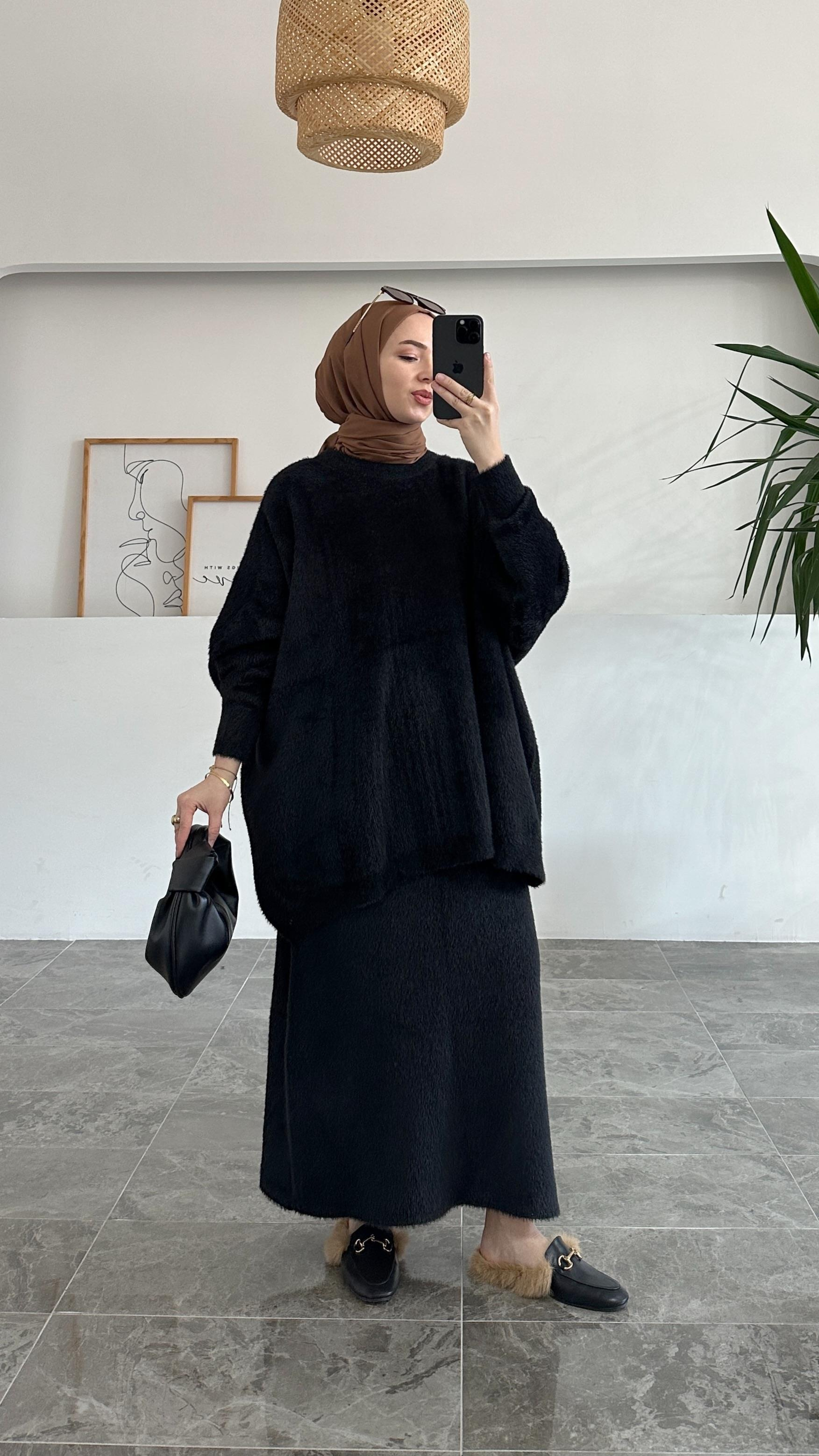 Zayna Angora Siyah Premıum Takım