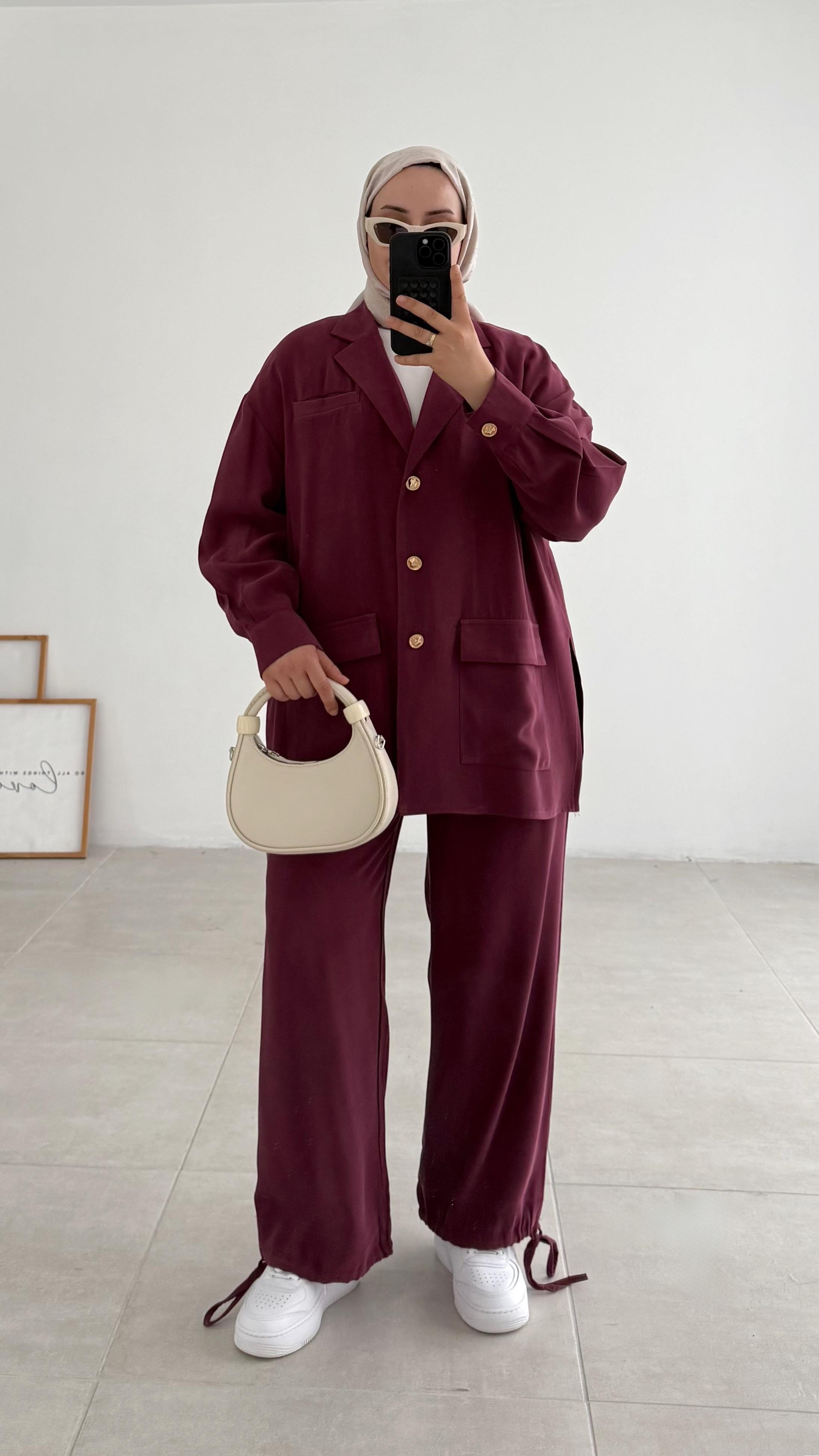 ZRA MUADİLİ Cep Detaylı Bordo Takım