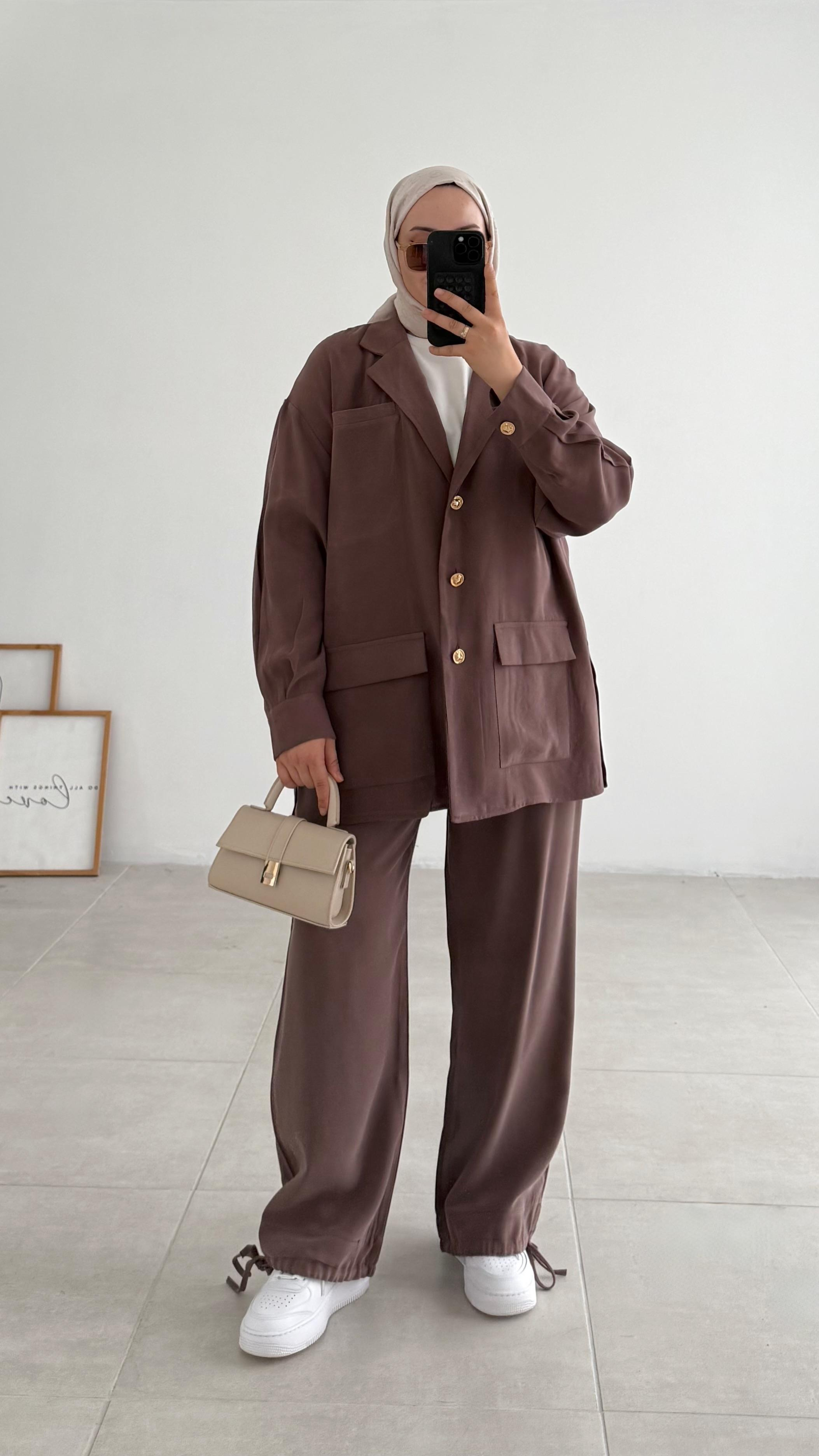 ZRA MUADİLİ Cep Detaylı Kahverengi Takım