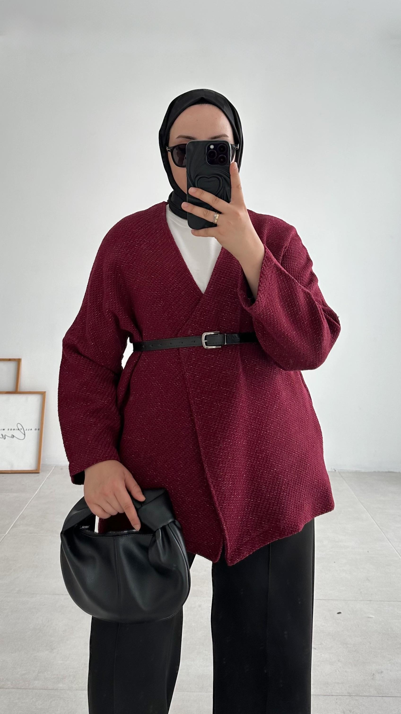ZRA MUADİLİ Simli Bordo Hırka (1802)