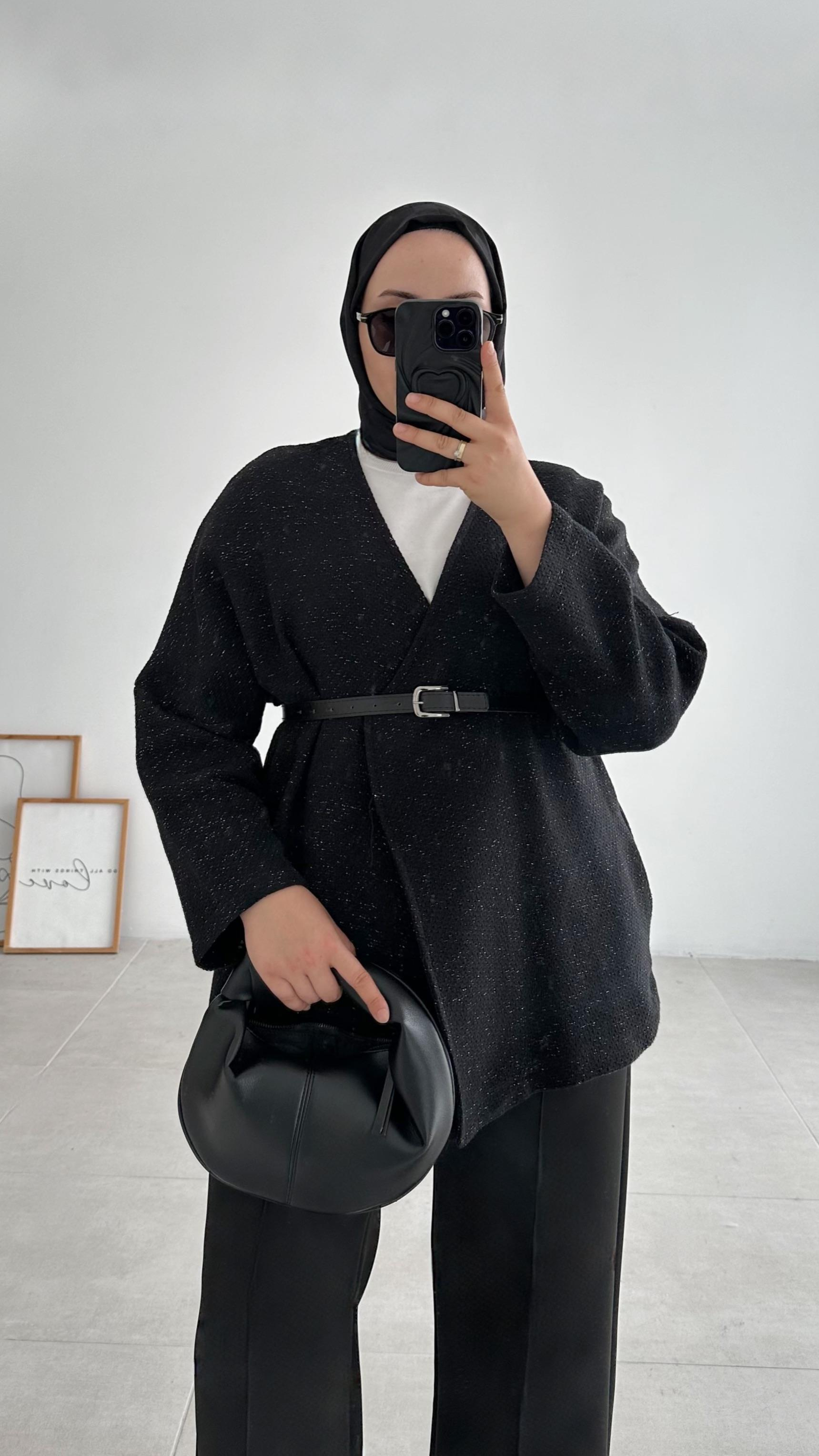 ZRA MUADİLİ Simli Siyah Hırka (1802)